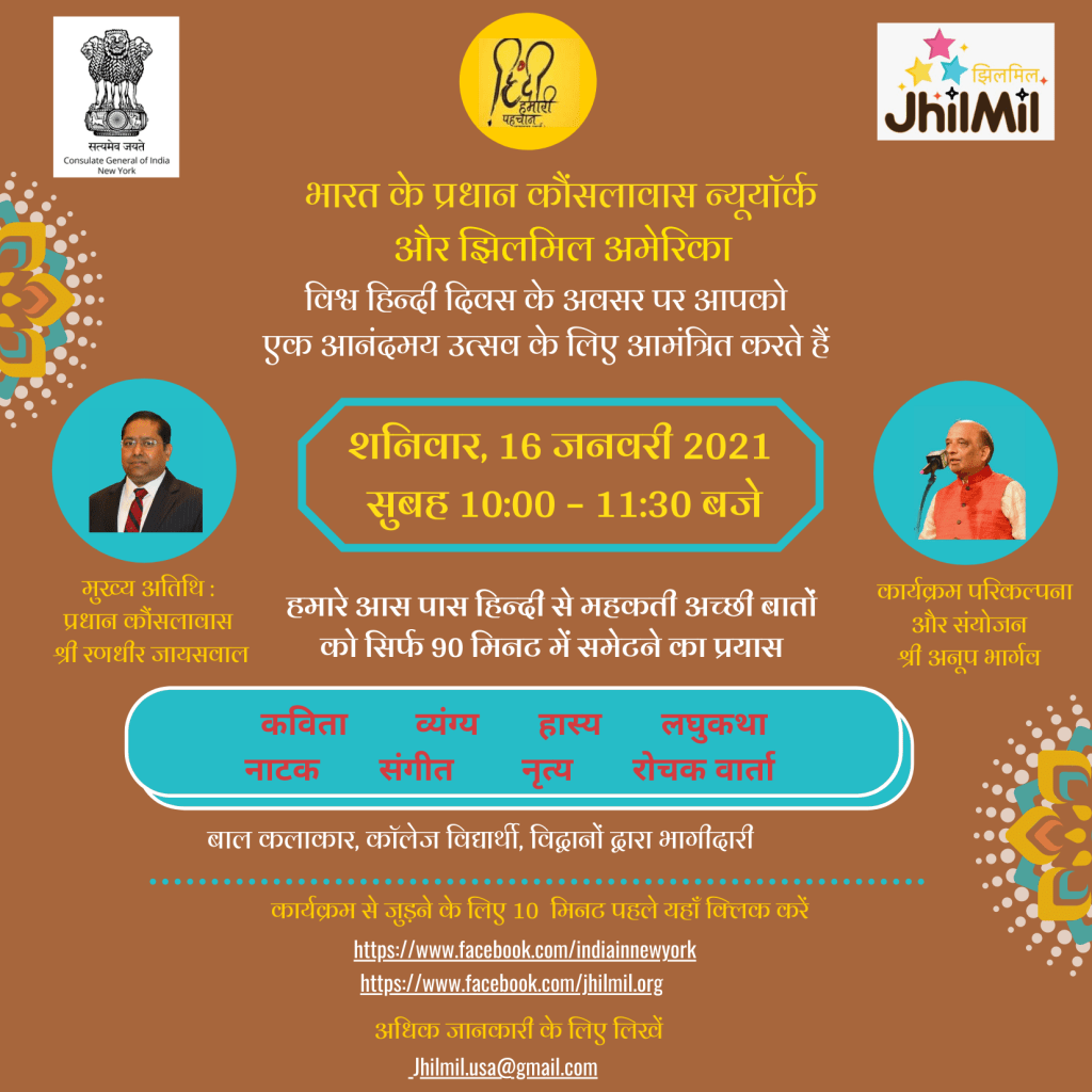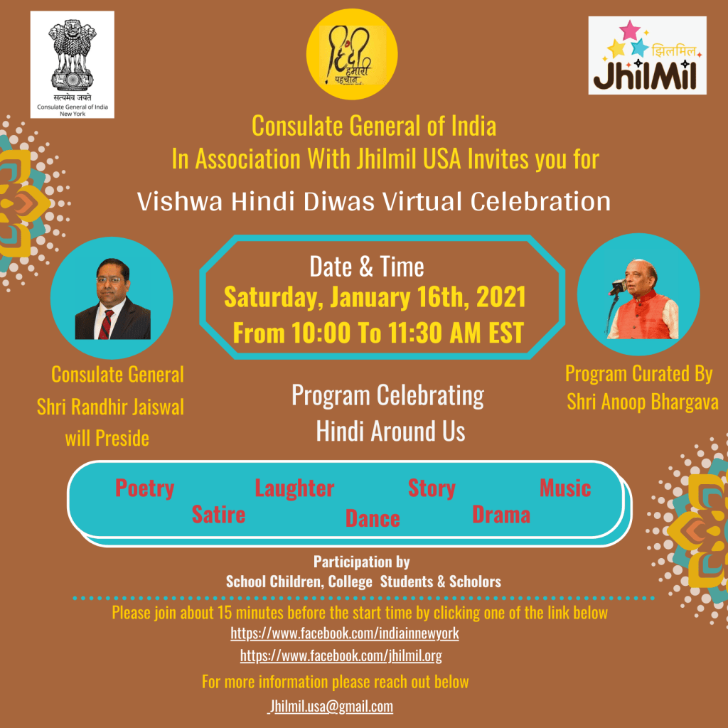 Hindi language academy भी अपने स्तर पर हिंदी को बढ़ाने के लिए प्रयासरत है और बहुत ही उत्साह के साथ हम भाग ले रहे हैं 16th January होने वाले प्रधान कोंसलवस ( Consulate General) और “झिलमिल” साहित्यिक संस्था द्वारा आयोजित “ विश्व हिंदी दिवस” के इस रोचक उत्सव में ।