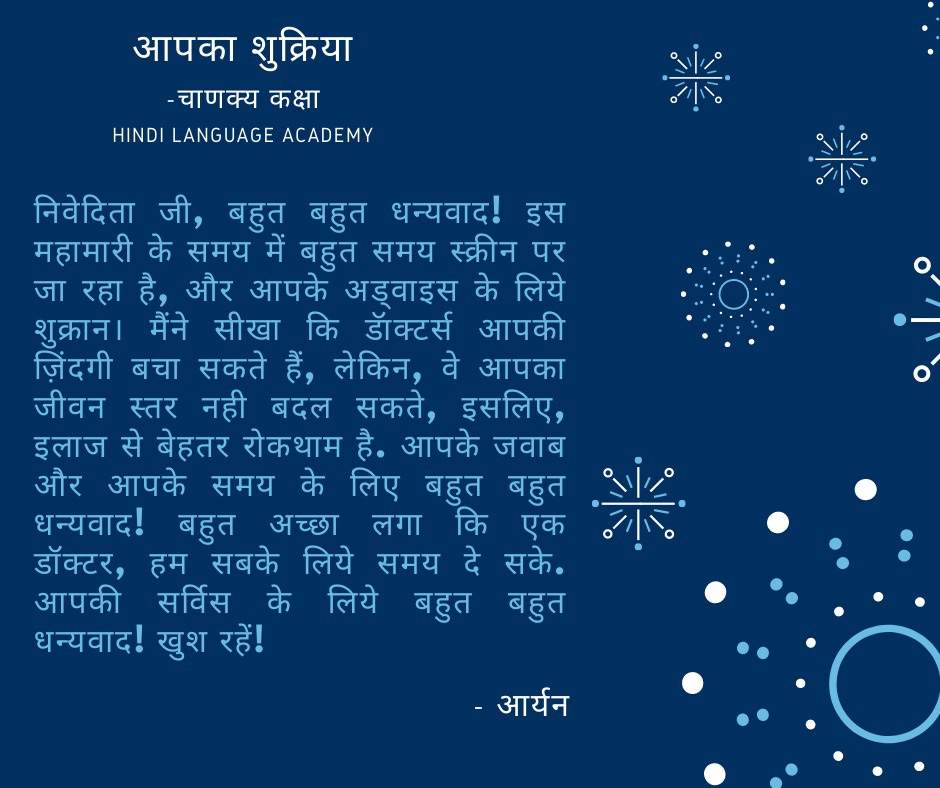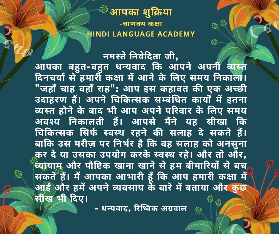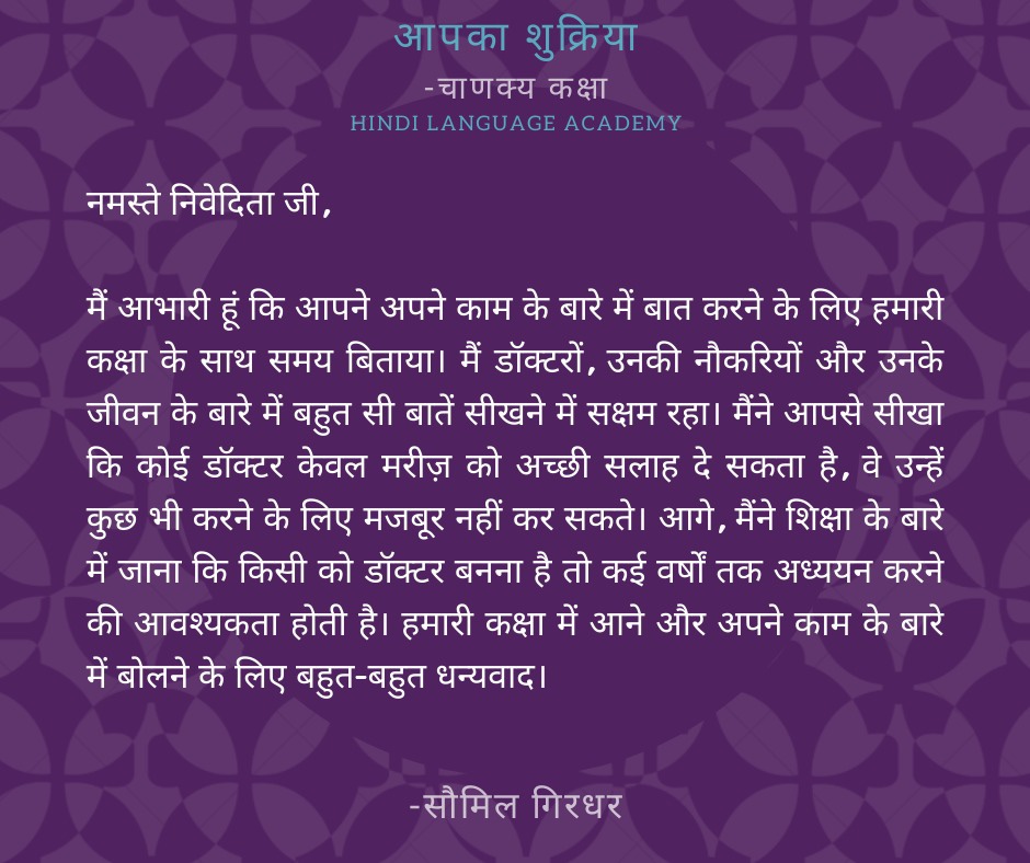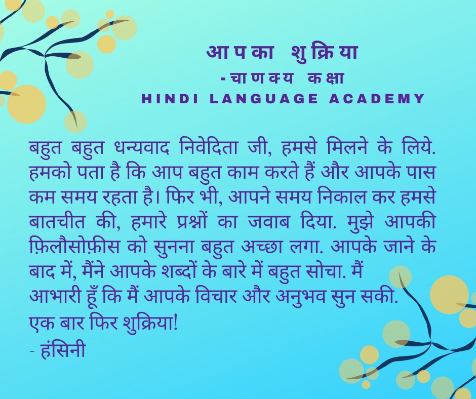 In a previous post we had shared that one of our classes interviewed an expert, in Hindi. Later, students reflected on how the interview went and what they learned from Dr. Nivedita Sharma. They also wrote thank you notes to express their gratitude. It is a heartwarming feeling to read what our students feel, think and express in a language they are still learning! It is our delight to share our joy with you all.