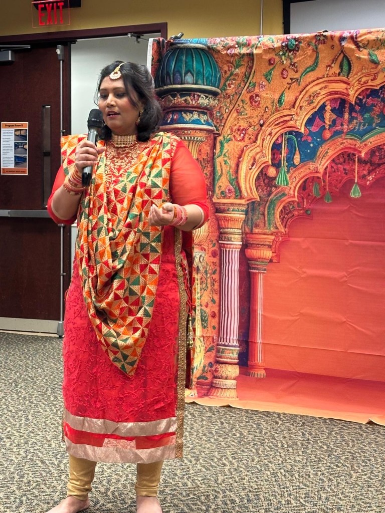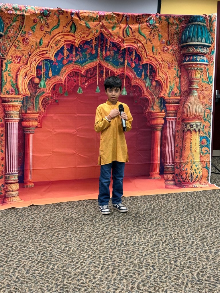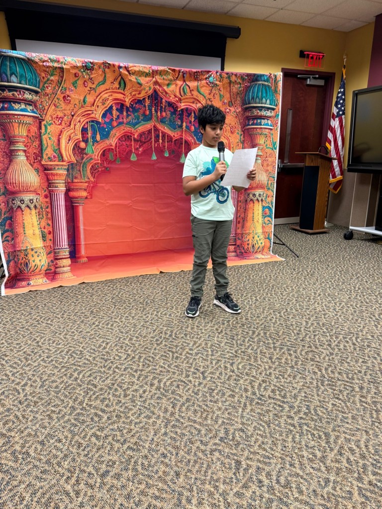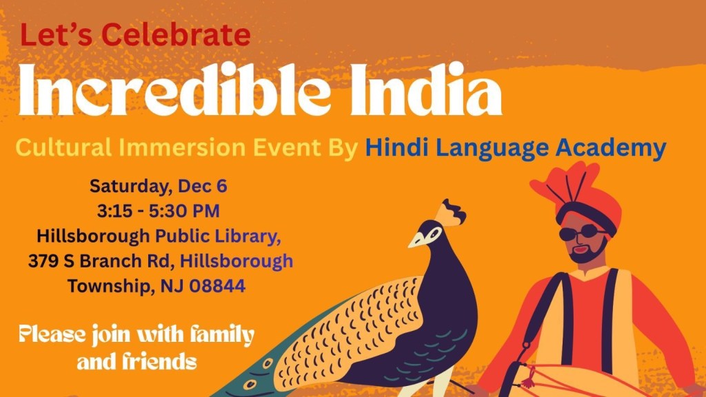 The culturally rich, cozy, and vibrant program “Incredible India” was held on Saturday, December 6, 2025, at the Hillsborough Public Library, and was beautifully organized by the HLA team. The event was led by the ever-energetic Rubina Nagarkatti and supported wholeheartedly—directly and indirectly—by the entire HLA family: Mamta Tripathi Ji, Manju Gupta Ji, Garima Agarwal, Renu Hooda, Deepika Singh, Gitanjali Gupta, Sangeeta Jain, Vinita Devangan, Mayuri Raman, Nishant Nayan, Parinitha Panakanthi, Soma Vyas, and our wonderful teaching assistant Shloka Harish. The event stood as a true testament to teamwork and collaboration.