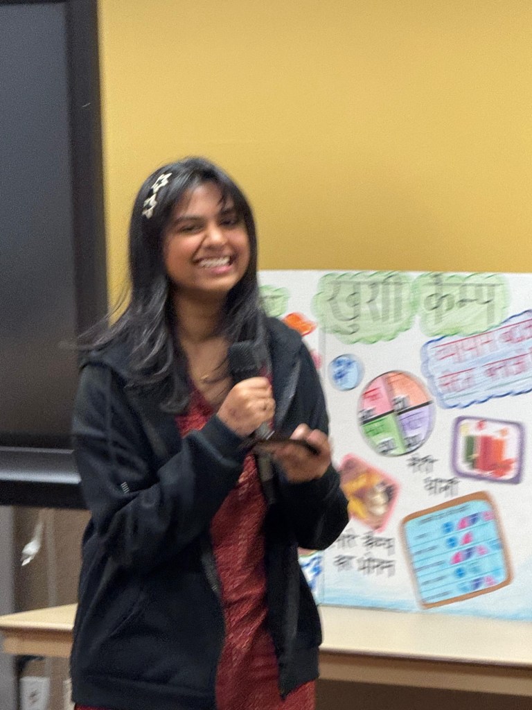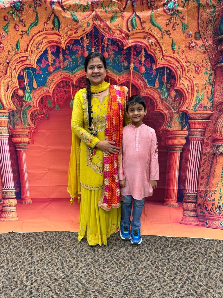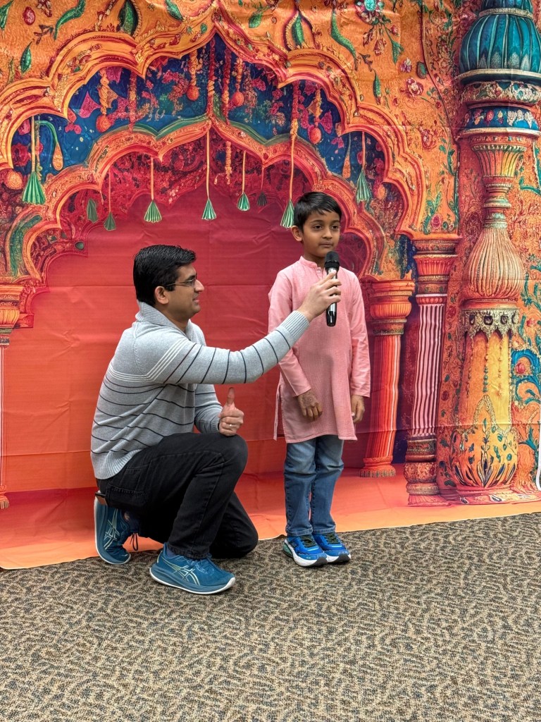 A special note of appreciation goes to Rubina for seamlessly coordinating and planning multiple aspects of the event, including Madhubani art, henna, and the Bhangra workshop, with the dedicated in-person support of Garima, Renu, Gitanjali, Sangeeta, and Deepika. We are also very grateful for our dedicated TA Shloka for being the MC of the talent show on a very short notice. Heartfelt thanks also go to our teachers’ spouses and children, whose timely help with the setup made the event run smoothly.